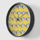 The size of the clock is dramatic and the abstract alcohol ink design is soothing and intricate at the same time. I chose the black frame that adds pop to the blue and gold design. The gold printing would be better in a slightly darker or larger font. I love it and I’m looking for just the right place in ny new apartment. I would recommend this clock for a personal gift or a present. I feel that the quality is excellent for the money! I’m a bit of a clock nut so I’m pretty particular about my purchases. The clock is larger in diameter than many if the clocks I have, so it stands out very well. I think a slightly darker printing color and a moderately larger size would best suit a professional decor or add more impact in a work place item.