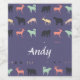Add your name on this colourful animal silhouettes on blue background pattern design.