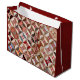 This unique gift bag bag features a striking spool pattern from a vintage late-nineteenth century American patchwork quilt. The intricate stitching details and colourful design (in tones of ruby red, light brown, dusty coral, etc.) are sure to brighten your day. Bag sides are a rich, complementary ruby red. An antique pattern with a distinctly modern, graphic look. Stylish and elegant! Perfect to hold a gift for the quilt-lover or sewing aficionado in your life.