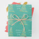 Wrap your gifts with this festive and colourful paper from the Peace Love Joy Collection in colours of green, red and gold. Sheet 1 is an aqua featuring a pattern of a gold abstract Christmas tree and Peace Love Joy in a simple gold text Sheet two features a white and gold polka dot pattern on a red background. Sheet three features a bold gold and white stripe pattern.