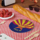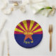 This design features the Arizona flag painted on wood with a hint of that background and has template text. Personalise the text, remove it, or select a font style, size, and colour you like. Great for state related events, reunions or summer picnics. You can also transfer this design where it fits appropriately to another product in the scroll bar such as the paper napkin.