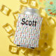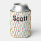 This can cooler has a mid-century modern design of arrows made from black lines and different shapes in retro colours of red, blue, green, orange, gold, and grey on a field of white. Keep the name, change it, or delete it completely. Want the same design with different colours? Message me.