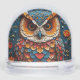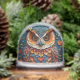 Vivid and intricately designed owl sculpture featuring vibrant colours and detailed floral elements, creating an artistic and whimsical nature-themed decorative piece.