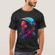 I give wanted to give this a 4 instead of a 5 because these Basic DARK T0shirts run unexpectedly SLIM or Narrow. Which is great if you do not have a potbelly, but I have a paunch. It isn't the shirt's fault that I've got a beer belly. The design and shirt itself is a quality cotton shirt. The color is more of a deep purple, but still a very pretty color. The Basic DARK T-shirts run a bit SLIMMER than the Basic Ts. The neck is a fraction narrower (or seems to be narrower) also. I'm a paunchy middle-aged woman and my neck is 12 inches (31cm) thick and the neckline fell about the same as in the photo of the man, and I had the desire to tug it a bit. So if you're a thick necked man or like loose shirts, be aware these are slimmer shirts. Once I get rid of my lockdown paunch it'll look great. The shirt washed well in cold water with no apparent bleeding. We don't have a dryer, so it hung dry. Did not shrink. Love the colors and the design. The design looks smaller on my shirt than it does on the model on-line. But still, it looks good on the shirt. The printing looks as it does on the model, just the size seems fractionally smaller. Washed garment in cold water, hung dry and design appeared unaffected.