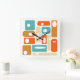This mid century modern square clock features abstract rectangles and white ovals, in the colours of turquoise, orange, and cream. This will make a fantastic addition to the walls of your home or office!