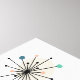 This mid-century modern artwork features shooting starbursts in the colours of turquoise, orange, tan, green, blue, black and brown. This will make a charming addition to any wall in your home!