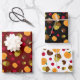 These wrapping paper sheets feature a cute autumn pumpkin with pumpkins, berries, acorns and chestnuts on a customisable burgundy, black and white background. Great for fall and Thanksgiving gift wrapping.