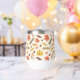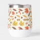 This design showcases a lively autumn-themed pattern featuring a variety of colourful leaves and acorns. The background is a light cream colour with subtle speckles, adding texture and depth to the design. The pattern includes maple leaves in vibrant shades of red, yellow, and orange, along with other leaves in warm browns, muted greens, and soft pinks. Scattered among the leaves are small acorns and clusters of berries, enhancing the fall ambiance. The arrangement is both whimsical and balanced, capturing the cosy and festive spirit of the autumn season.
