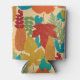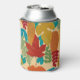 Red, orange, yellow, green and teal colourful watercolor autumn leaves on a light beige background.