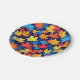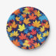Colourful Autumn Leaves On Dark Blue Background Paper Plate