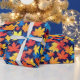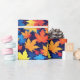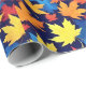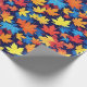 Colourful Autumn Leaves On Dark Blue Background Wrapping Paper