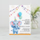 Colourful Baby Elephant with Balloons Baby Shower Invitation