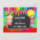 A cheerful postcard featuring happy children on a chalkboard background with coloured pencils. The back of this postcard has several template rectangular shapes. You can customise or delete them if you like.