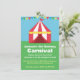 Kids will be excited to receive this bright and cheerful birthday party invitation that has a red and white carnival tent with lots of colourful bunting flags hanging around. This is also perfect for schools that are holding a school carnival. Personalise easily with your party details.
