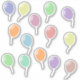 This design features a variety of balloon-inspired shapes coloured various colours. Stickers like these might be used when celebrating somebody's birthday or some other special event.