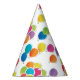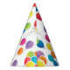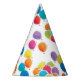 These birthday party hats are covered with colourful balloons in red, blue, green, yellow, orange, and purple. Personalise with the appropriate age of the birthday girl / boy.