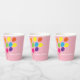 This cute girls birthday party paper cup features a graphic of a bouquet of multicolored balloons waving in the wind. The background is a soft pink which makes it perfect for a little girl's birthday.