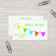 This party store business card has a colourful banner across the front. I've included templates on the front and back for your own information and personalisation. There are several paper options available, be sure to compare the thickness and gloss that would be right for your business. All items are filled by Zazzle and are 100% satisfaction guaranteed. For your order and shipping issues, please contact Zazzle's Customer Support via https://goo.gl/nCgptf
