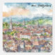 Stylish and colourful Bern Switzerland watercolor scheme Sticker showcasing a city view over the swiss capital with its amazing historic architecture and also the swiss alps. Makes an amazing travel souvenir and gift idea for every tourist and visitor of Switzerland. Make this product your own and purchase now.