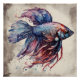 A Colourful Betta Fish is a detailed watercolor with expressive eyes is portrayed against a soft, blurred background. The natural colours enhance the lifelike appearance.