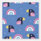 Colourful Bird and Rainbow Pattern Blue Wallpaper