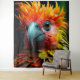 This tapestry has a colourful bird on it.