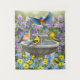 Colourful Birds and Bird Bath Flower Garden Tapestry