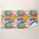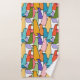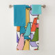 This towel set has a light turquoise washcloth, a darker turquoise hand towel and a bath towel with a mid-century modern design of overlapping birds in flower power colours. Want different colours? Message me.