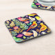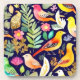 Colourful birds floral pattern blue decor coaster