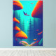 This digital artwork showcases the vibrant colours and intricate details of birds as they glide above a dense canopy of trees.