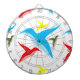 Colourful birds on dartboard