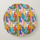 This round throw pillow has a mid-century modern design of overlapping birds in flower power colours with a solid gold back. Want different colours? Message me.