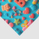 Bright and cheerful arrangement of birthday elements including gifts, hearts, stars, and musical notes on a vibrant blue background, perfect for festive and celebratory themes.