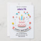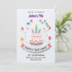 This cheerful birthday party invitation design features a playful combination of vibrant balloons, colourful bunting, and a deliciously illustrated birthday cake with candles at the centre. The bright colours and festive elements make it the perfect choice for celebrating any birthday, whether for kids or adults. Ideal for printing or digital sharing, this invitation sets a joyful tone with its fun, eye-catching design that’s perfect for any birthday party theme. Customise it for your celebration to add a personal touch and make the invite unforgettable. A delightful option for anyone looking to create a memorable party atmosphere!
