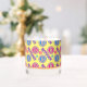 This eye-catching image showcases a repeating pattern featuring the word "BITCOIN" and the Bitcoin symbol (a stylised "B" with two vertical lines through it) in various colours. Set against a bright yellow background, the Bitcoin symbols and text are presented in blue, pink, and yellow circles. The diagonal arrangement of the elements creates a visually striking and colourful design, making this pattern perfect for use in wallpapers, promotional materials, or merchandise designs, celebrating the popular cryptocurrency, Bitcoin.
