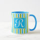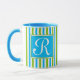 Colourful Blue and Green Stripe Pattern Monogram Mug