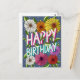 Colourful Blue Floral Personalised Happy Birthday Postcard