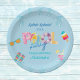 Personalise these vibrant Kids Pool Party Paper Plates and add a Splish Splash touch of colour to your precious Girl or Boys Birthday Celebration. These fun paper plates feature sunglasses, flip flops, a summer cold drink and delicious popsicle all set against a cool blue background. Whether you’re lounging poolside or making a splashing in the water, these plates will add a colourful touch to your Swimming Pool Party.