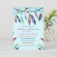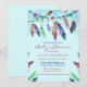 This invitation is a colourful blue watercolor feather baby shower invitation.