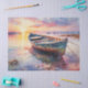 A hand-painted style image of a boat floating on calm water, with soft sunset colours in the sky. Suitable for artistic and coastal-themed crafts.