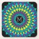 Colourful Bohemian Flower with Custom Monogram Square Paper Coaster