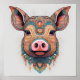 Colourful Boho Bohemian Pig Whimsical Wall Art
