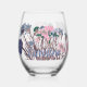 Colourful Boho Pretty Spring Flowers +Custom Name Stemless Wine Glass
