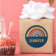 Colourful boho rainbow design with orange, red, beige, pink and light blue colours. It's a great idea to choose this design for birthdays. You can change the background colour easily. It is easy to customise it by changing the names/date/text etc.