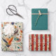 Pretty wrapping paper set with three Boho style coordinating sheets. One colourful modern boho floral stlyle paper, one faux embossed teal paper. and one striped paper with a red background and stripes made from a section of the floral paper. Each sheet is 19" x 29"--large enough to wrap one larger item or several small ones. This wrapping paper coordinates with the Boho Adult Birthday Party collection from Night and Day Designs.