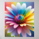 A vibrant flower displays an extraordinary array of colours, with petals transitioning seamlessly from one hue to another. The background complements the bloom with a soft blur of matching rainbow shades.