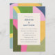 This colourful wedding invitation features a unique abstract art background in pink, green, and yellow.