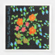 A colourful floral art print designed paper book club napkin. Text can be personalised or text is removable. The liquorice black background can be changed to any colour to suit your decor, or special event. The Flower image can be changed to your own photographs.