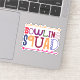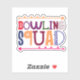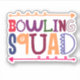 This delightful and whimsical contour-cut sticker features the phrase “BOWLING SQUAD” in a bold, playful font. Each letter dances with its own unique shape and style, creating a lively mix of colours in shades of red, purple, blue, and gold. Above the words, a golden yellow arrow with curly loops points to the right, while below, a similar arrow in deep pink points to the left, framing the text in a fun and dynamic way. Perfect for bowling team members or enthusiasts, this sticker is a fantastic way to show off your love for the sport. Stick it on your laptop, notebook, bowling ball, or bowling bag to add a splash of personality and team spirit. This vibrant and eclectic design is sure to bring a smile to anyone’s face and is a great way to celebrate your passion for bowling in a fun and colourful way.