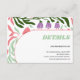 This enclosure card showcases a colourful display of retro flowers and colourful branches, perfect for a wedding with a touch of nostalgia. The coral peach frame elegantly surrounds your personalised text, while behind it there are branches adorned with retro folklore flowers. On the reverse side, a solid mint green colour adds a refreshing touch. The word "Details" is prominently displayed in bold typography, ensuring that all the important information stands out.
